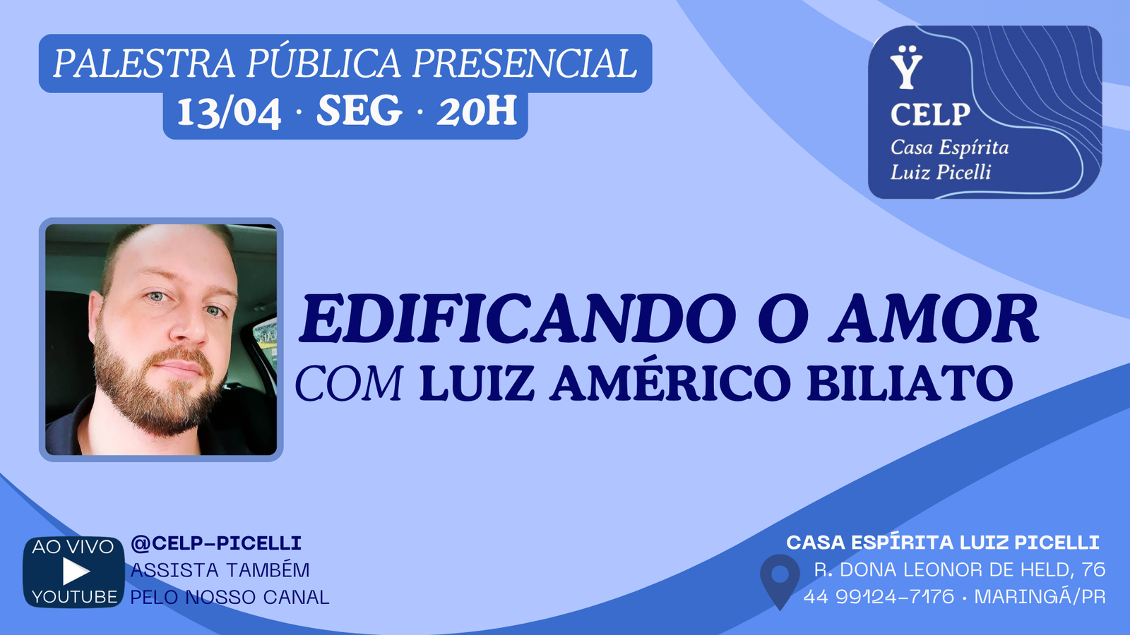 Convidamos a todos para a Palestra Pública Presencial – “Edificando o amor”, na CELP com Luiz Américo Biliato.